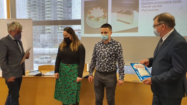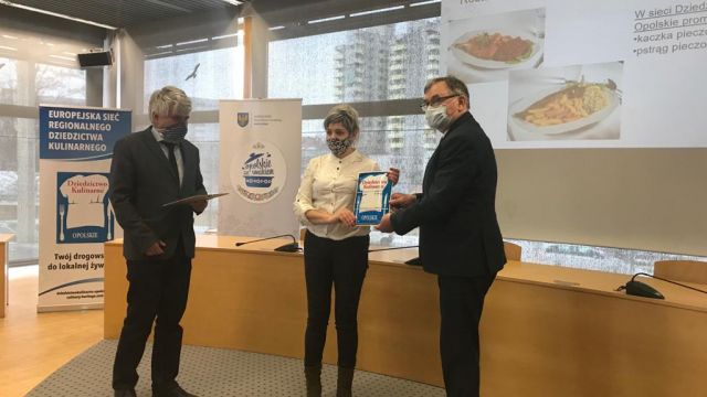 W dniu dzisiejszym 8 nowych firm otrzymało certyfikaty oraz emaliowany szyld potwierdzający przynależność do sieci Dziedzictwo Kulinarne Opolskie, działającej w ramach Europejskiej Sieci Regionalnego Dziedzictwa Kulinarnego. Podczas spotkania Członek Zarządu Województwa Opolskiego Antoni Konopka przekazał certyfikaty potwierdzające uczestnictwo w sieci.
