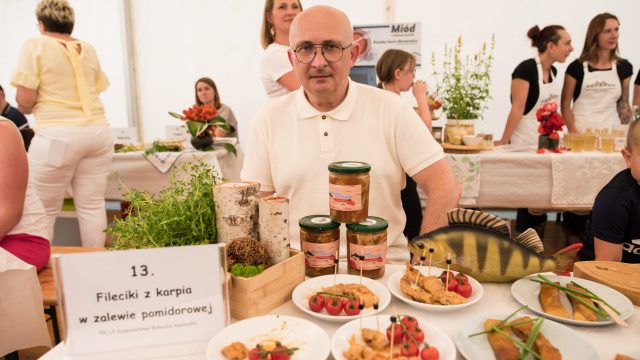 owe Gospodarstwo Rybackie Niemodlin. – Prezentujemy fileciki z karpia w zalewie z pomidorami i karpia wędzonego. Coraz popularniejsze są przetwory z karpia, a do niedawna kojarzył się on nam tylko z grudniem. W tej chwili przełamujemy te stereotypy i polecamy nasze pyszne ryby przez cały rok – zachęcali wystawcy z Niemodlina.