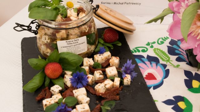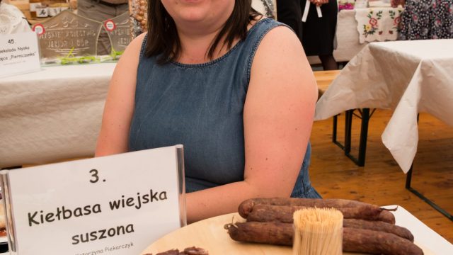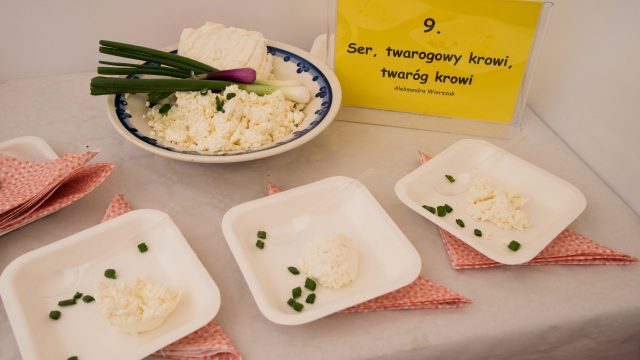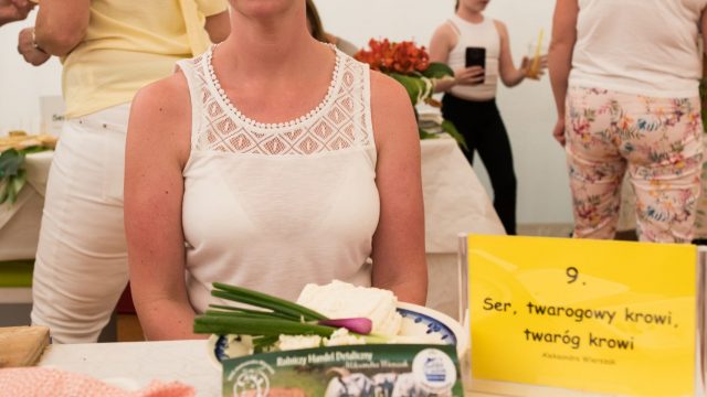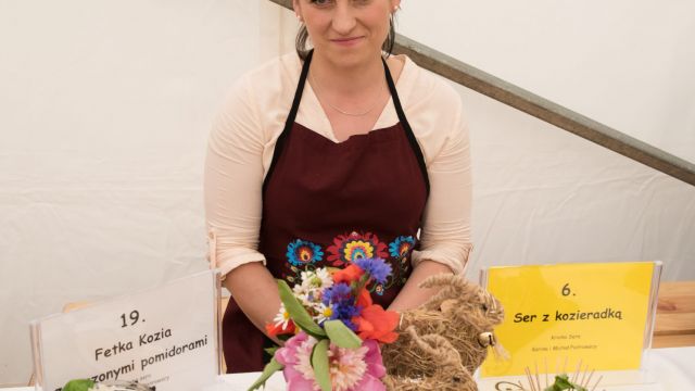 – Przyjechałam z miejscowości Wysoka z gminy Branice. Moja miejscowość jest znana z naszych kóz. Jest ich 400 i obdarowują one nas pysznym i zdrowym mlekiem, z którego powstają od niedawna nasze sery. Przyświeca nam motto, że zdrowie zaczyna się tam, gdzie początek ma nasze mleko. Ponieważ dajemy bardzo dużo serca i pracy, żeby to mleko było jak najlepszej jakości, przekłada to się również na nasz produkt, który przywiozłam. Jest to „Wysocki specjał”. Powstaje z mleka naszych kóz, znajduje się tu też czosnek od lokalnego rolnika oraz nasz Olej Głubczycki. To produkt całkowicie stworzony w naszej gminie – wyjaśniła startująca w konkursie Aneta Pająk z Koziej Farmy Wysoka.