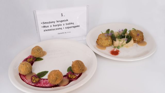 II miejsce – Opolanka sp. z o.o. – Smażony krupniok, Mus z karpia z babką ziemniaczaną i szparagami – Opolanka sp. z o. o)