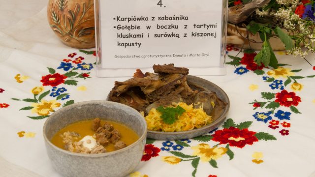 KGW w Nasalach za Polską zupę grzybową ze swojskim makaronem, królika z sosem śmietanowym podanym z kluskami śląskimi i mieszanką kiszonych warzyw