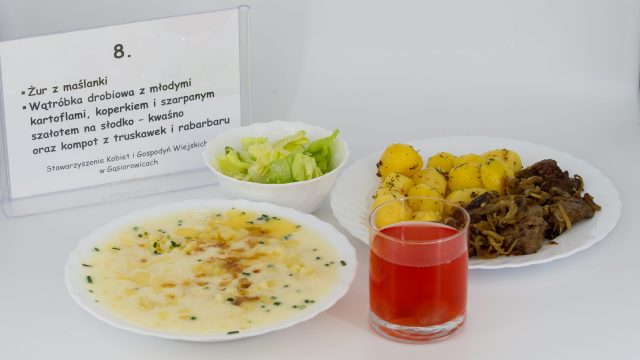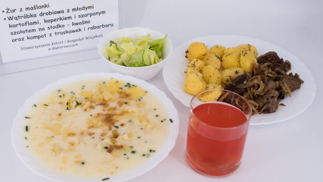 Stowarzyszenie Kobiet i Gospodyń Wiejskich w Gąsiorowicach za żur z maślanki, wątróbkę drobiową z młodymi kartoflami, koperkiem i szarpanym szałotem na słodko – kwaśno oraz kompot z truskawek i rabarbaru,