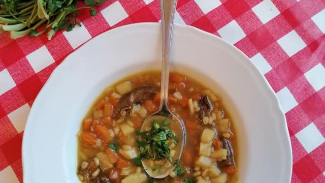 - Zupa: Nowogrodzką zupę grzybową z pęczakiem