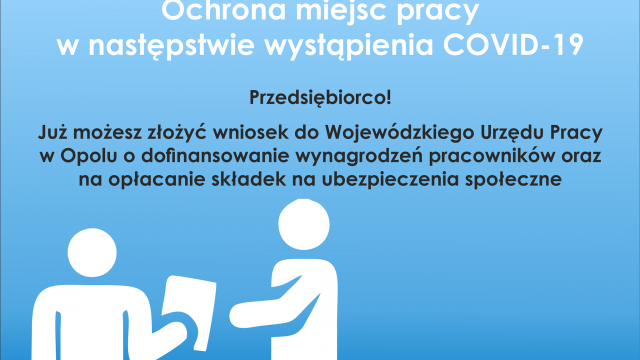 Przedsiębiorcy już od 1 kwietnia br. mogą składać do Wojewódzkiego Urzędu Pracy w Opolu wnioski o dofinansowanie do wynagrodzeń pracowników objętych przestojem ekonomicznym lub obniżonym wymiarem czasu pracy, a także na opłacanie składek na ubezpieczenia społeczne należnych pracodawcy od kwoty przyznanych świadczeń.