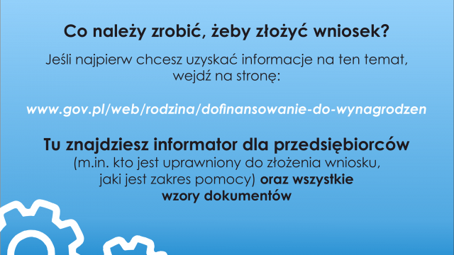 Jeśli ktoś na początek chce uzyskać informacje na ten temat, powinien wejść na stronę: https://www.gov.pl/web/rodzina/dofinansowanie-do-wynagrodzen . Tu znajduje się informator dla przedsiębiorców – z informacjami, kto jest uprawniony do złożenia wniosku, jaki jest zakres pomocy i w jaki sposób starać się o pomoc, dostępne są też wszystkie wzory dokumentów.